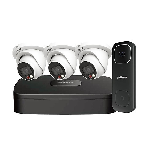 The Dahua Video Doorbell Network Security System provides all the components to quickly install, configure, and employ a complete video security solution. The WiFi video doorbell offers 5MP video and two-way communication, the IP cameras offer the clarity of 4MP video, and the NVR offers built-in motion detection algorithms, alarm triggers, and customized recording modes. The doorbell and network cameras connect easily to the NVR for total system recording. In addition, the Video Doorbell and the NVR are compatible with the Dahua DMSS mobile application to view live video, configure and acknowledge alarms, and share video with authorized users.